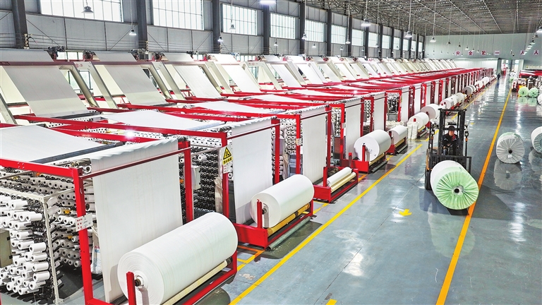 位于桐柏县经济产业开发区的河南裕博塑业有限公司,车间正在生产订单产品。该公司采用国际上领先的塑编创新技术和圆织机、拉丝机等新科技设备,预计今年可实现产值6亿元。崔培林 摄