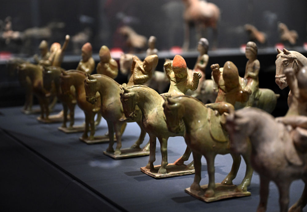 1月1日,这是此次展出的唐代青釉彩绘伎乐骑马俑。记者 李嘉南 摄