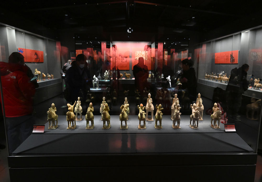 当历史进入盛唐,展厅里,马球、马术、舞马、马上乐等题材的文物集中呈现,千年前的盛世繁华拉至眼前。