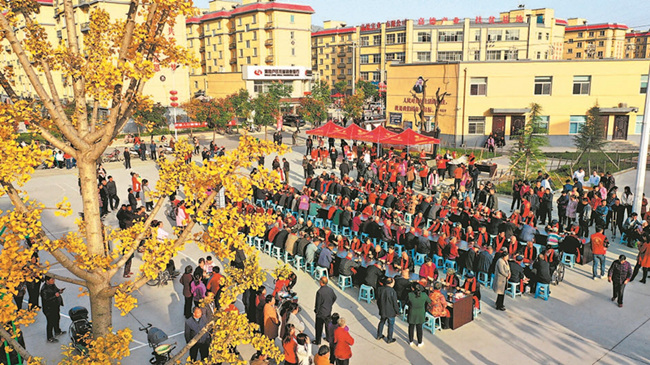 10月23日,卢氏县兴贤里易地扶贫搬迁社区管委会组织社区里70岁以上老人150余人,举行饺子宴、文艺演出、给老人洗脚等系列主题活动。(聂金锋 摄)