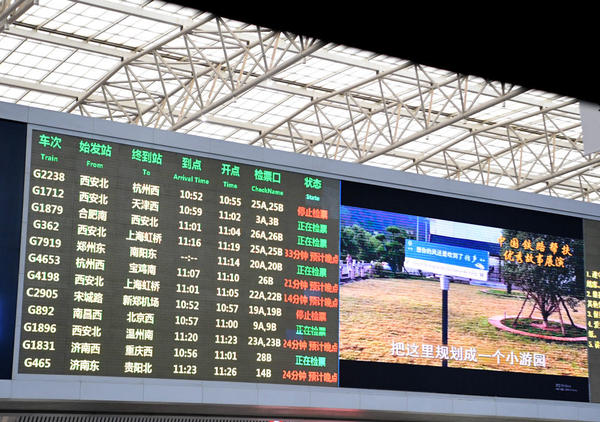 2月1日,郑州东站候车大厅电子屏上显示的车次信息。新华社记者 郝源 摄