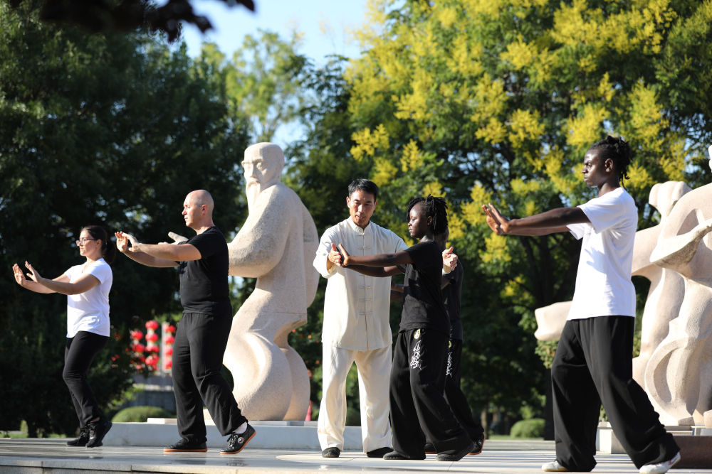 9月6日,在河南省焦作市温县陈家沟太极拳文化国际交流中心,外籍学员在练习太极拳。新华社发(徐宏星 摄)