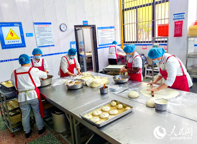 济源第一中学餐厅后厨正在为学生制作面食。(程明辉 摄)