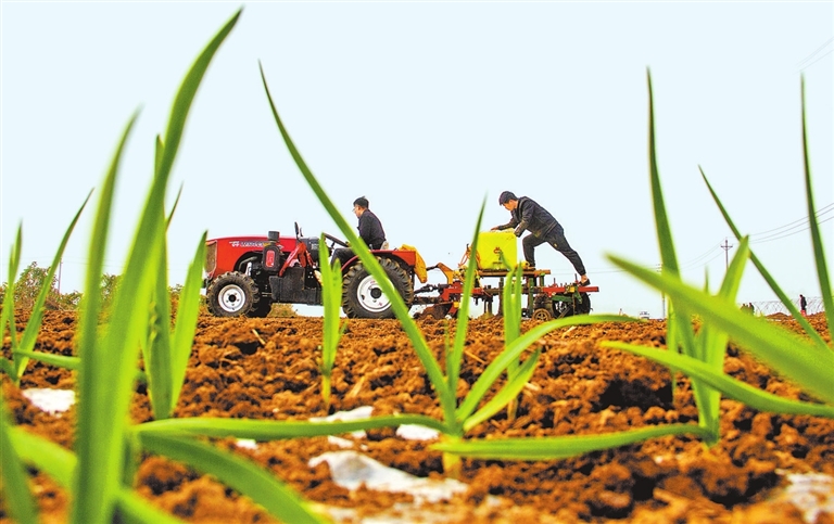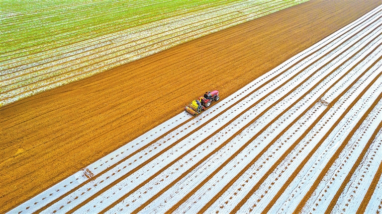 11月15日,在夏邑县会亭镇冯楼村,村民驾驶农机铺设保温地膜,为栽植洋葱做准备。近年来,当地围绕抓党建促乡村振兴工作主线,构建“党支部+合作社+农户”的农业特色产业发展模式,调优农业特色种植结构,为农民增收致富拓宽了渠道。 王高超 摄