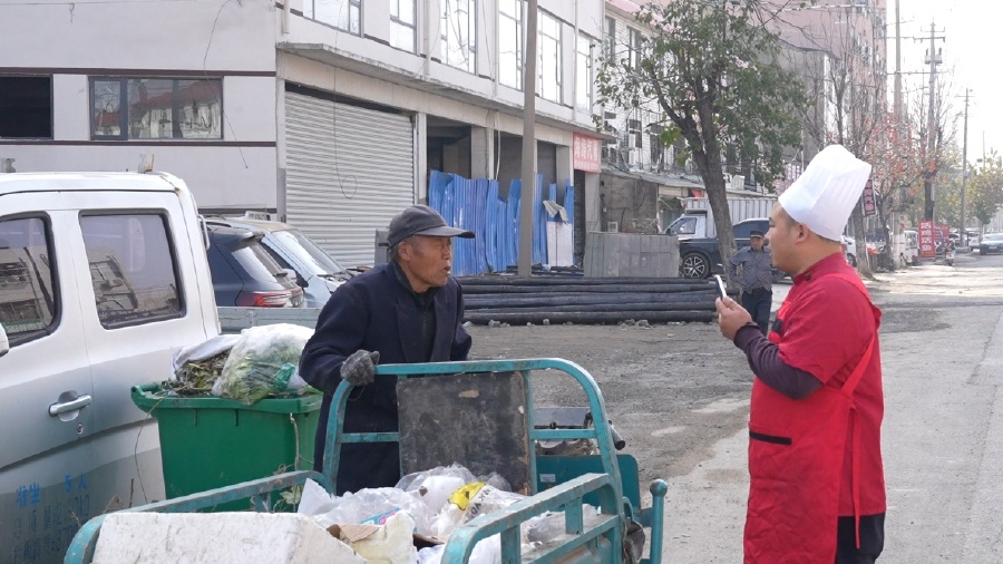 翻开周朝奎的社交媒体账号,给卖菜、收废品的老人免费端上热饭的画面比比皆是。