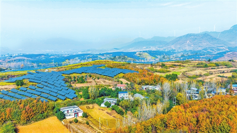 11月14日,南召县太山庙乡横山村,一排排光伏发电板在阳光照耀下熠熠生辉。近年来,当地大力发展风电、光伏等产业,助力乡村振兴。张雪灵 摄