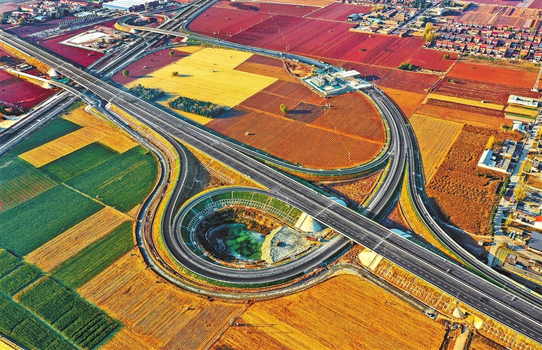 11月20日,沿黄高速武陟至济源段二标已完工的北郭互通。目前,武陟至济源段二标主体工程已全部完工,进入验收阶段。沿黄高速武陟至济源段是河南省高速公路“13445工程”重点项目之一,总投资约134.8亿元,计划今年年底全线建成通车。刘金元 摄