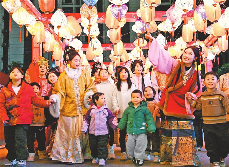 2月18日,羲皇故都淮阳被喜庆的氛围包裹得满满当当,街头巷尾红灯笼高挂,千年古城尽显新春的热闹与温情。 冯怡文 摄
