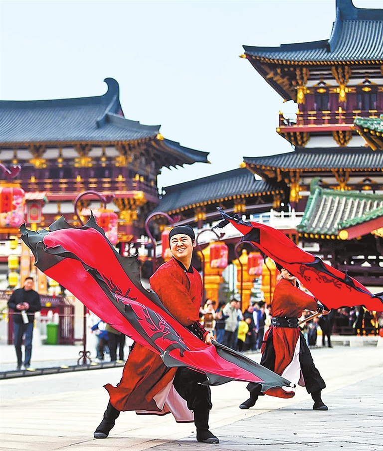 2月16日,除夕,洛阳市隋唐洛阳城国家遗址公园九洲池景区,开展“神都迎新岁”“鱼游巡礼”演艺项目,融合傩舞、鱼灯、武术等,让游客沉浸式体验年味十足的传统民俗表演。 黄政伟 摄