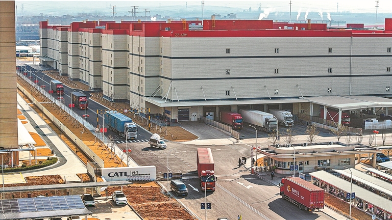 2月24日,洛阳市伊滨区,宁德时代洛阳基地一期项目门前运输车辆往来穿梭,一批批动力电池装车发运,供应小米、理想、蔚来等多家新能源车企,现场一派繁忙景象。倪睿 摄