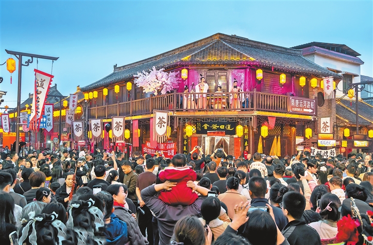 2月21日,滑县道口古镇正月古会热闹上演,展现出豫北传统民俗的独特魅力。现场人声鼎沸,不少游客驻足观看表演。田好武 摄